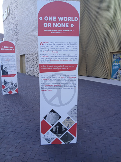 En 1948, cet idéal est incarné par Garry Davis : traumatisé par sa participation aux bombardements des villes allemandes, cet ancien pilote américain renonce à sa nationalité et se déclare « premier citoyen du monde ». Très vite, ses intiatives font sensation, des foules enthousiastes l’acclament. Des dizaines de milliers d’hommes et de femmes s’affirment liés à la communauté mondiale ; la préfecture du Lot se proclame Cahors Mundi, suivie par des centaines de villes et de villages.