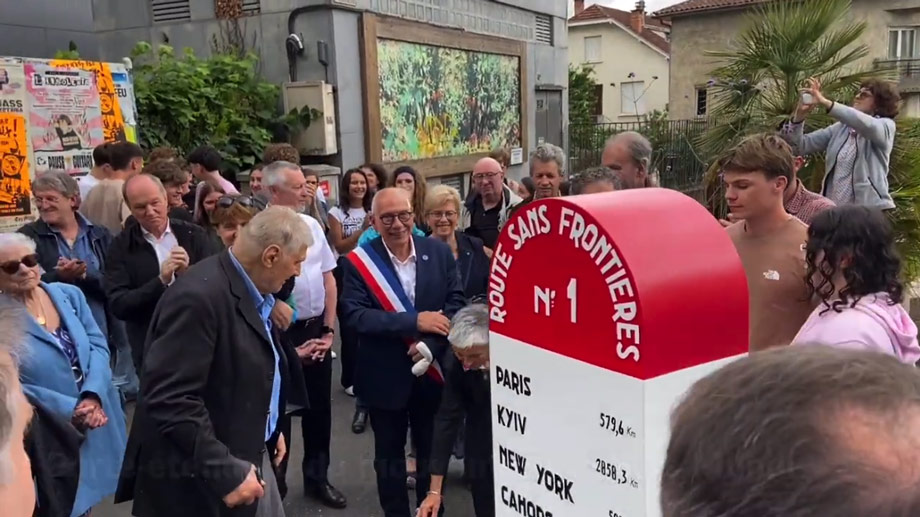 La première borne de la Route « sans frontières » avait été inaugurée le 23 juin 1950 à Figeac, la veille du premier anniversaire de Cahors Mundi, les 24 et 25 juin.75 ans après sa première installation, la dernière borne du tracé historique de la Route mondiale, qui partait de Cahors en passant au pied de Saint-Cirq-Lapopie, retrouve enfin sa place non loin de son emplacement initial, devant le Lycée Champollion. Cette borne a été réalisée par les élèves du Lycée Monnerville de Cahors.