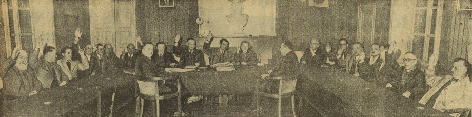Le conseil municipal de Figeac adopte la Charte de mondialisation, le 10 novembre 1949, Peuple du Monde n°17 - photo J. Lattes